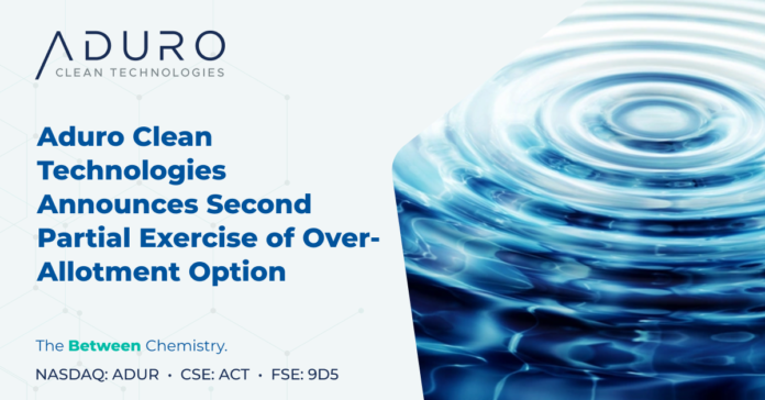 Aduro Clean Technologies Announces Second Partial Exercise of Over-Allotment Option