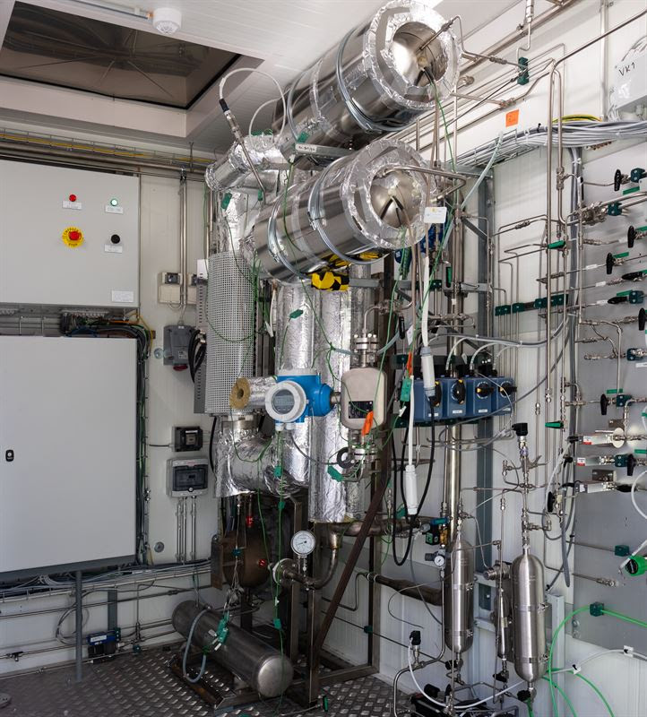 VTT’s pilot equipment for converting carbon dioxide into synthesis gas. Synthesis gas produces ethylene and propane gases for polymer production