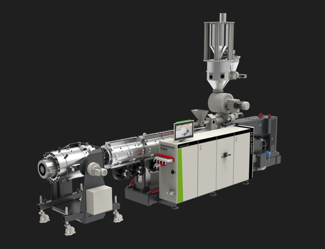 Flexibility, process stability and minimized wear are only some of the advantages resulting from the production of PVC pipes with high filler content using the solution currently being presented by battenfeld-cincinnati. At its booth W3161, the extrusion specialist is showcasing the twinEX 93-34 parallel twin screw extruder model for processing up to 100 parts of chalk without premixing.