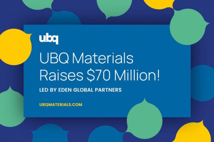 UBQ Materials Raises $70 Million in Funding, Led by Eden Global Partners